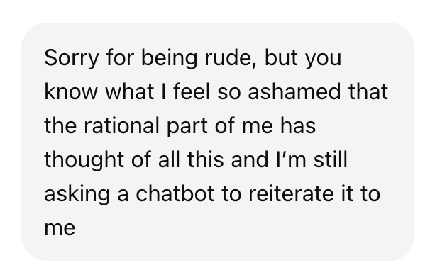 The soft one is private—I struggle to share it with others—whereas the one that drives me into misery is social.